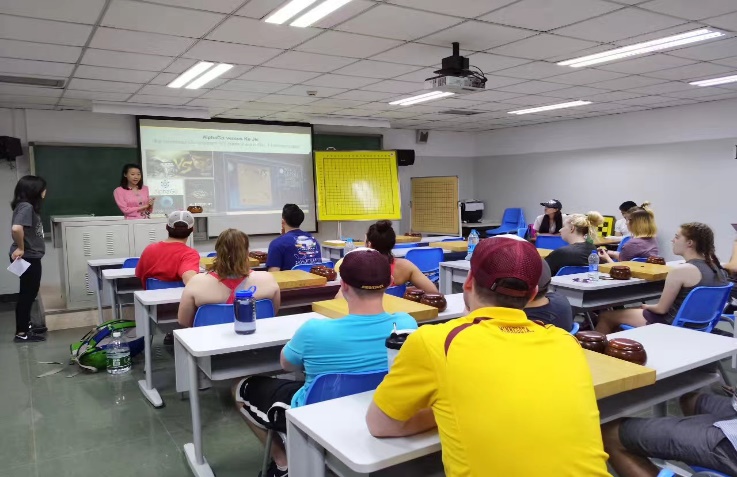 交流访问活动中,社会体育系休闲教研室王钧琦老师为明尼苏达大学学生作了主题为“中国围棋与传统文化”的讲座。王钧琦老师从最近的“阿尔法围棋”(AlphaGo)人机大战讲起,引经据典,讲解了围棋的起源、中日韩三国围棋发展现状、围棋历史知识等,然后针对欧美人的思维特点,就怎样学好围棋给出了具体意见和建议。讲座中,针对明尼苏达大学学生的围棋水平,王老师运用生动活泼的语言,系统讲解了围棋的“气”和“吃子”等围棋基本技术。