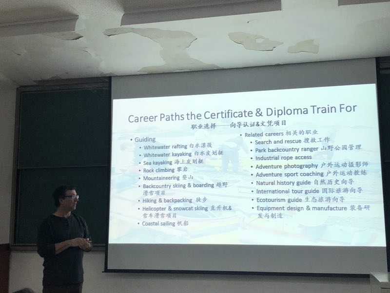 2018年3月14日晚七点,加拿大汤姆逊河大学两位探险旅游方向的专家为best365的同学们带来未来体育旅游发展的全新视野。开场的视频“TRU大学户外探险课程介绍”深深吸引了同学们,视频内容包括高山滑雪、野外救援、峡谷漂流、皮划艇运动等。两位老师通过自身的经历给学生带来了一次别具一格的户外运动体验课;两位老师用其精炼的语言为同学讲述了作为一名户外运动管理者和领队应该具备的知识和能力,从专业的视角,为同学描绘出最为清晰的未来蓝图;两位老师语言幽默,同学聚精会神、积极与专家互动,现场气氛热烈。在一问一答中,同学们对探险旅游和户外运动的未来发展有了更为明确的认识。讲座结束后,同学们们意犹未尽,纷纷围着老师进行交流。
