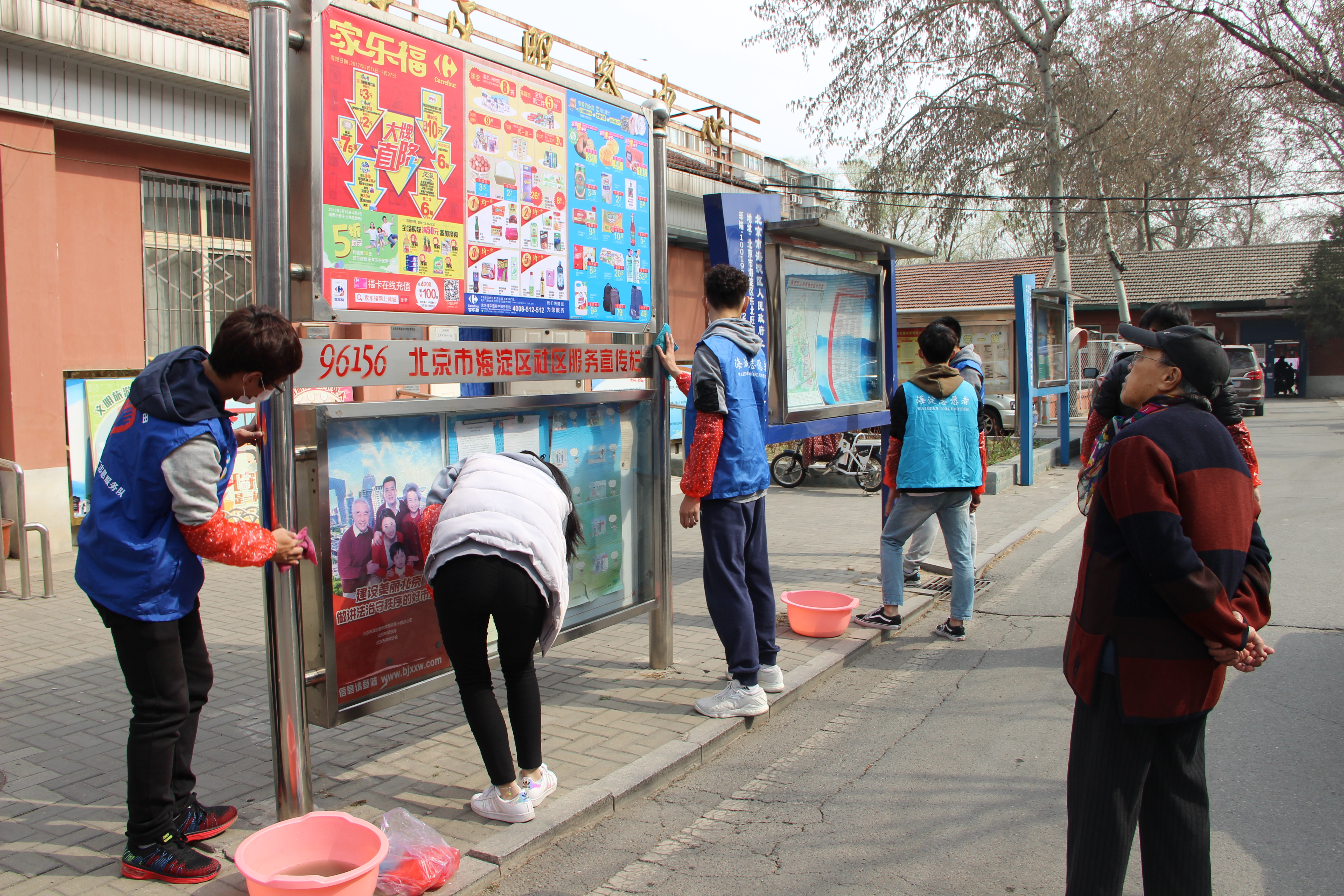 九点五十分左右,大家来到了家属区的社区活动中心,经过社区负责人简短的欢迎和培训之后,大家迅速分为三组。在领取了劳动工具之后,社区负责人带领各支队伍到达了指定的位置,积极开展了工作。一组在家属楼里捡垃圾,一组对家属楼的健身器械以及活动展板进行清洁,一组铲除家属楼的小广告。同学们对待自己手头的工作都非常认真,一丝不苟的完成着每一个细节。而同学们认真的态度也获得了许多社区居民的高度赞扬。