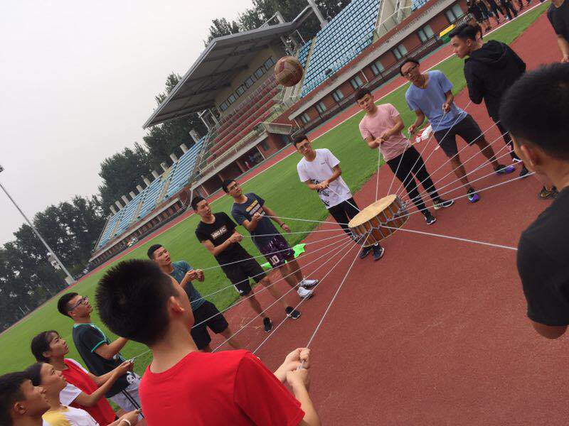 随后,同学们在操场进行了多种趣味性团队合作运动项目,通过这些项目,他们深刻体会到了合作与团结,学习与思考的重要性。