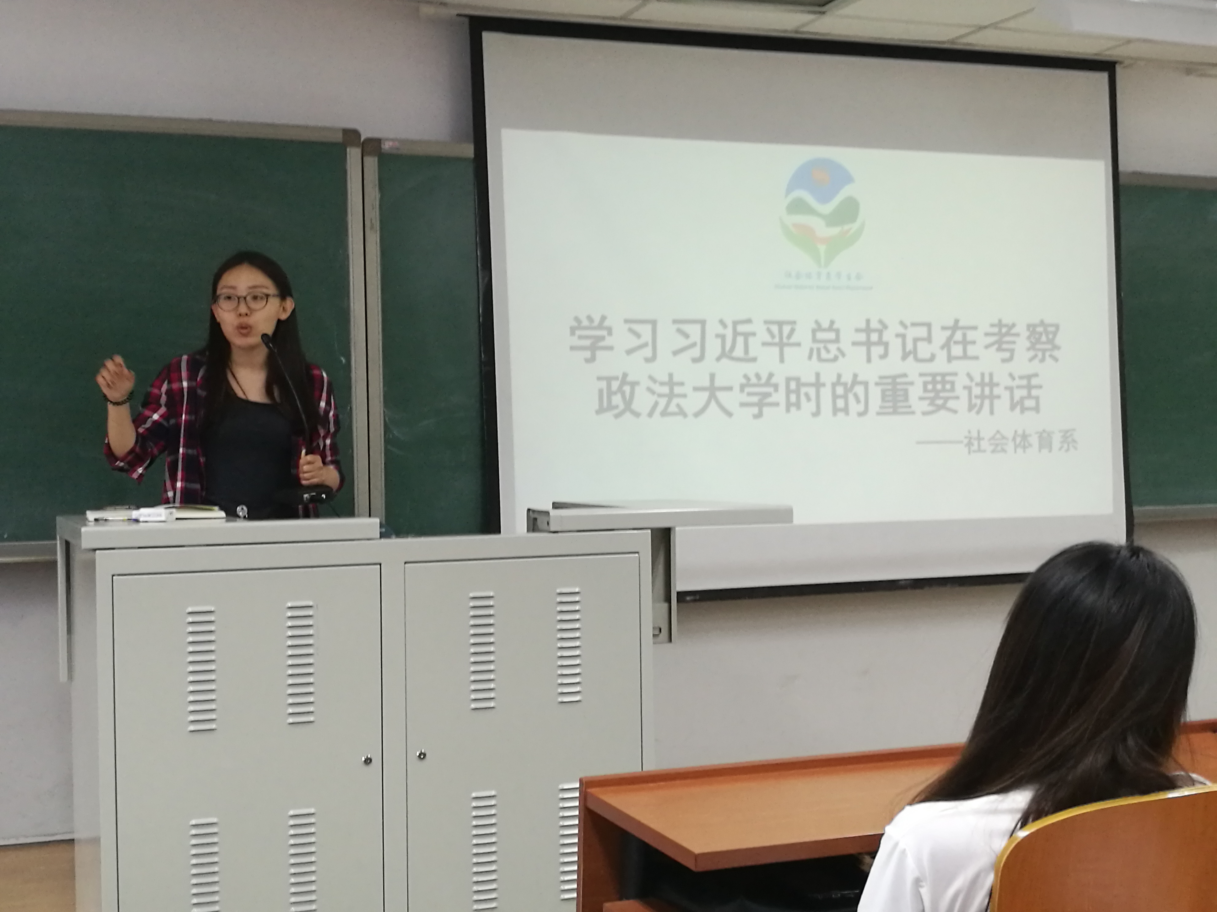 2017年5月9日中午12点,社会体育系团总支书记陈子琳在教学楼313教室主持了关于“学习习近平总书记在考察政法大学时的重要讲话”的学习大会。来自社会体育系的优秀团员和部分骨干们参加了本次会议。