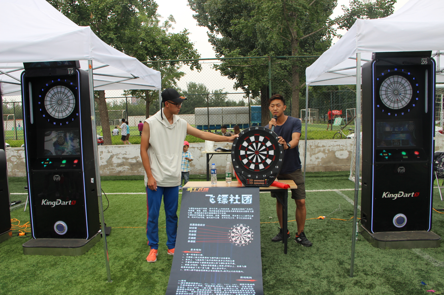 本次展览社会体育系拥有12个展位中的四席,社会体育系带去了四台飞镖机、VR自行车和划船模拟器。在展览中,前来参观体验的人络绎不绝,特别是四台飞镖机前更是聚满了体验人员,大家对飞镖这一项目充满了浓厚的兴趣,在工作人员的指导与帮助下,很多观众还双双对战,体验了几局飞镖竞技,很多观众的高超技艺更是引起了大量围观人员的声声叫好。而在VR自行车面前也必不可少的聚拢了一部分观众,大家纷纷对VR自行车的奇妙体验产生了好奇,不厌其烦的听着场边工作人员的产品介绍。