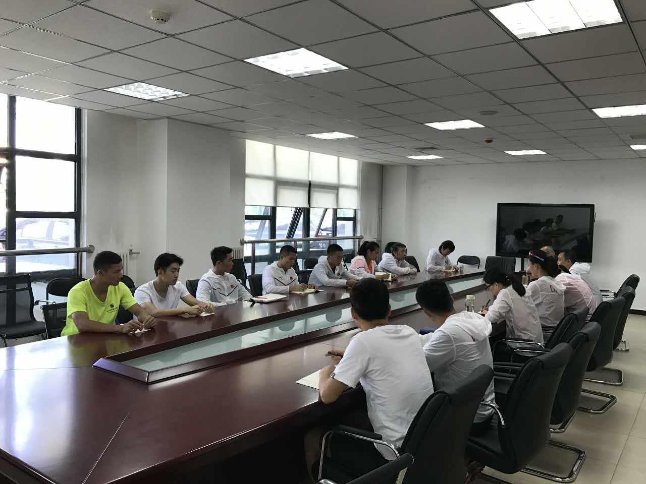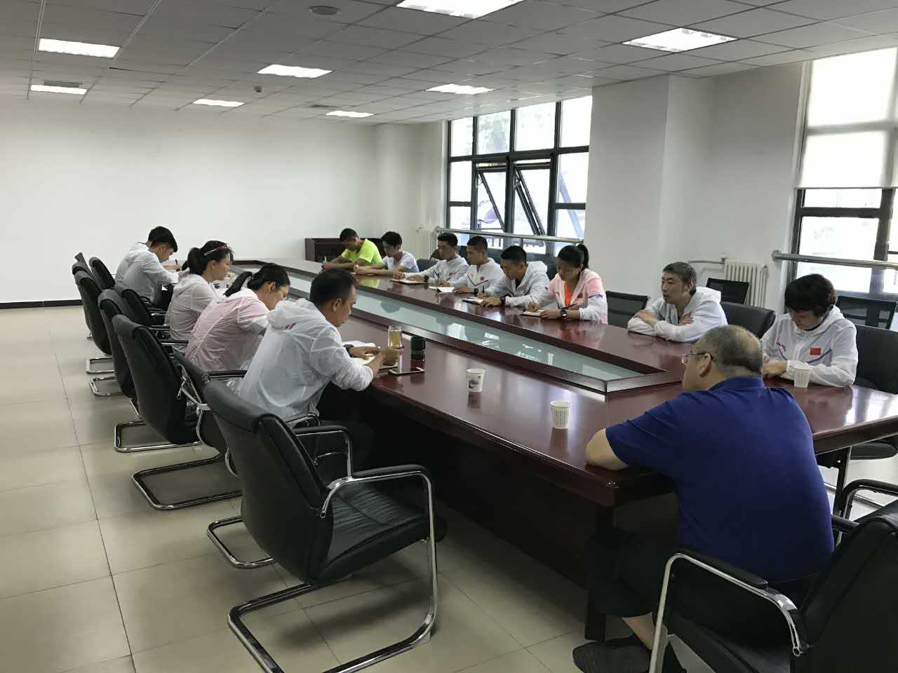 2017年6月14日上午10点,best365官方网站铁人三项队“2017年秦皇岛北戴河全国铁人三项冠军杯”赛前准备会议在英东看台下109会议室准时召开,校铁三队全体队员参会,社会体育系主任张健、党总支副书记陆璐、教练林健、彭义、沈思佳出席会议。