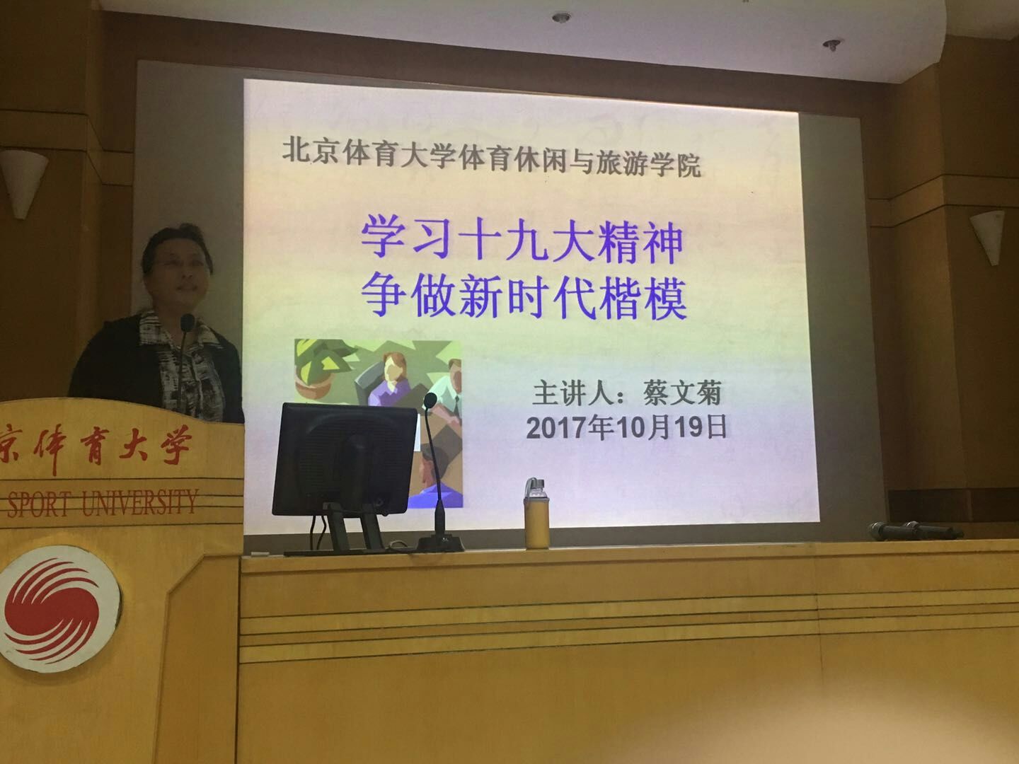 会上,蔡文菊书记将习总书记在十九大开幕式上的重要讲话内容提炼了出来,对党的一些新提法进行了解读。“青年兴则国家兴,青年强则国家强。青年一代有理想、有本领、有担当,国家就有前途,民族就有希望。”这是习近平总书记对青年学生的要求,也是蔡书记对学院全体党员学生干部的期望。在讲到十九大报告中关于体育相关内容时,蔡书记鼓励在座的党员、学生干部在新时代到来之际,在体育被提升到国家战略高度的时代,体育大学生更应肩负起重任,锐意进取,奋发向上,争取在新时期能够成为我国体育与健康事业的栋梁之才。