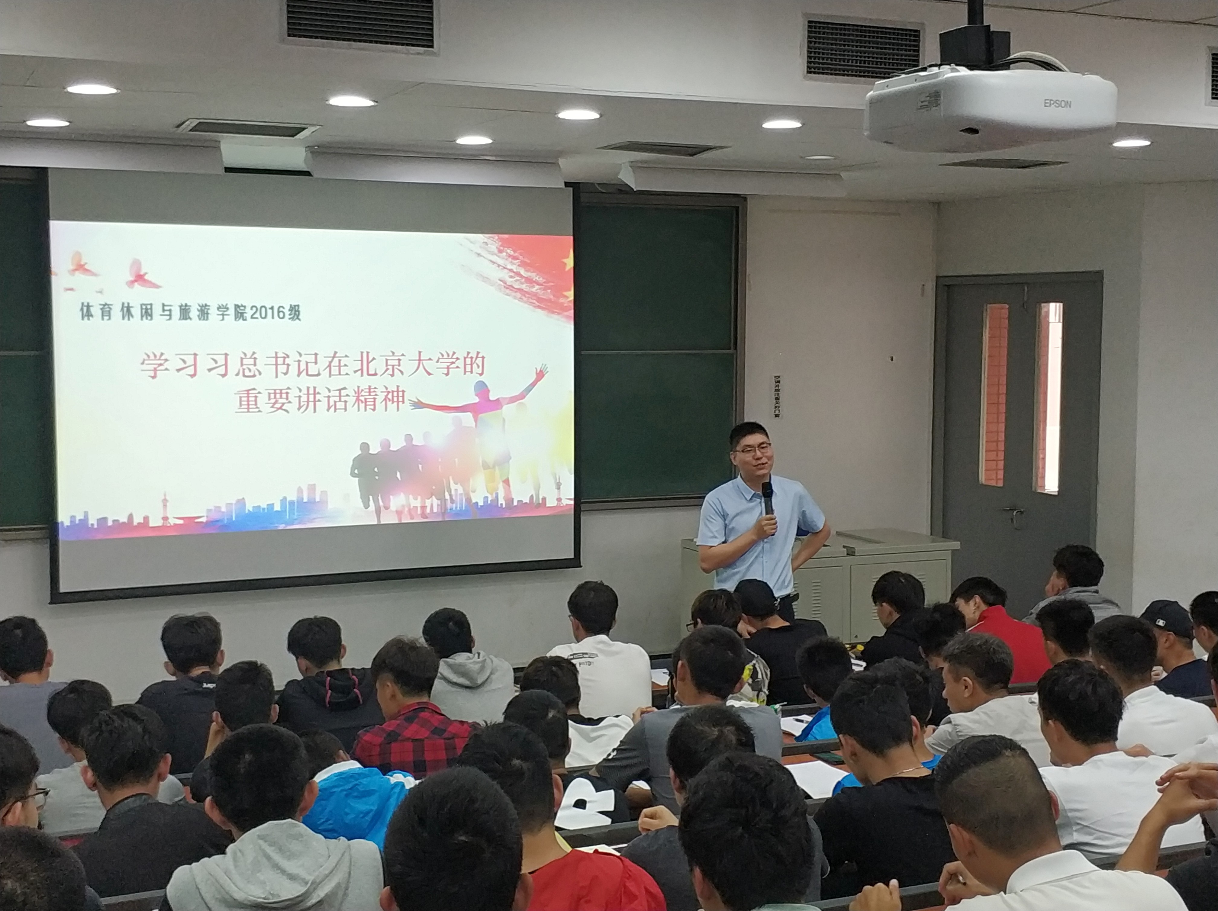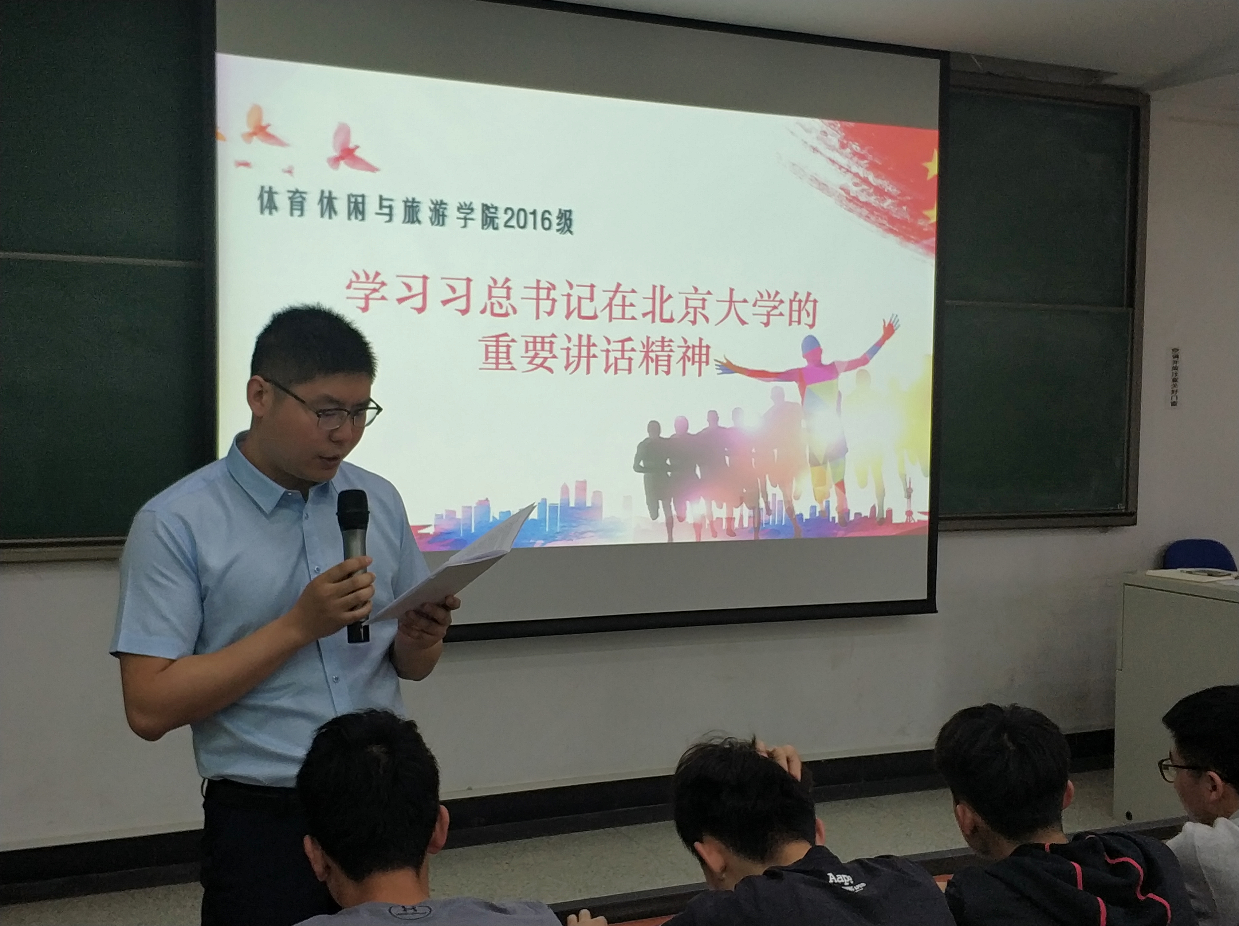 best3652016级全体学生于5月7日利用早操时间,集体在教学楼314教室学习了习近平总书记在北大的重要讲话精神。会议由16级辅导员沈珂珂老师主持。